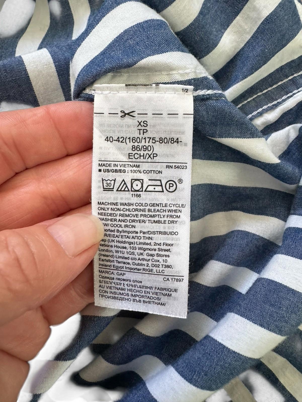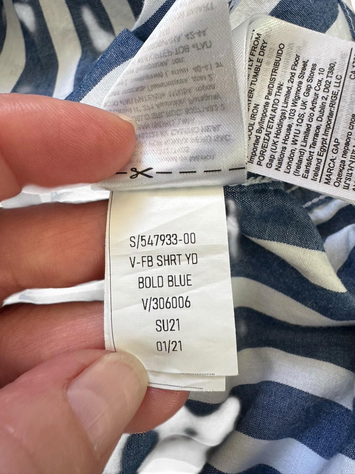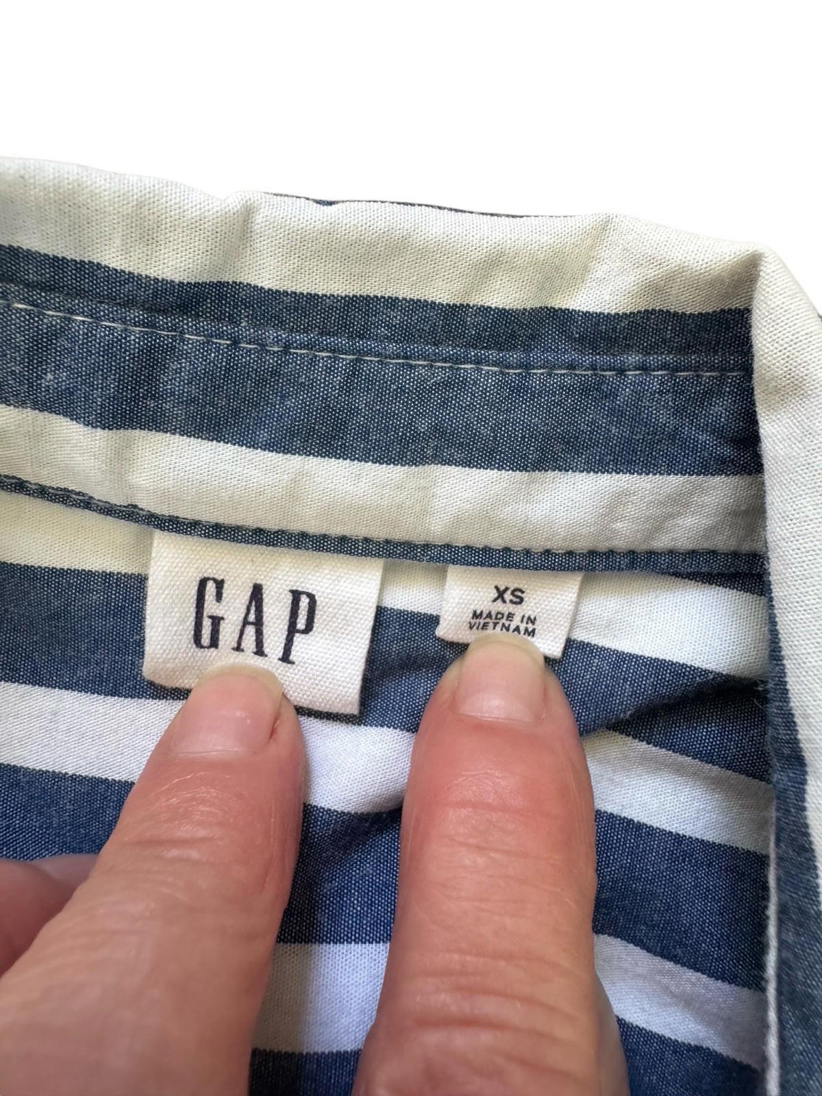 Elevate her everyday style with the Excellent GAP Women's Bold Blue Striped Button-Down Oxford shirt in size XS. This timeless piece blends iconic GAP quality with a fresh, bold blue striped twist, making it a standout addition to any wardrobe.