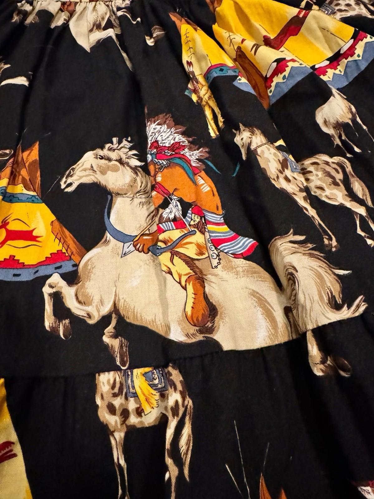Vintage Western Rodeo Cowgirl Cotton Skirt Native American Horses Made in USA