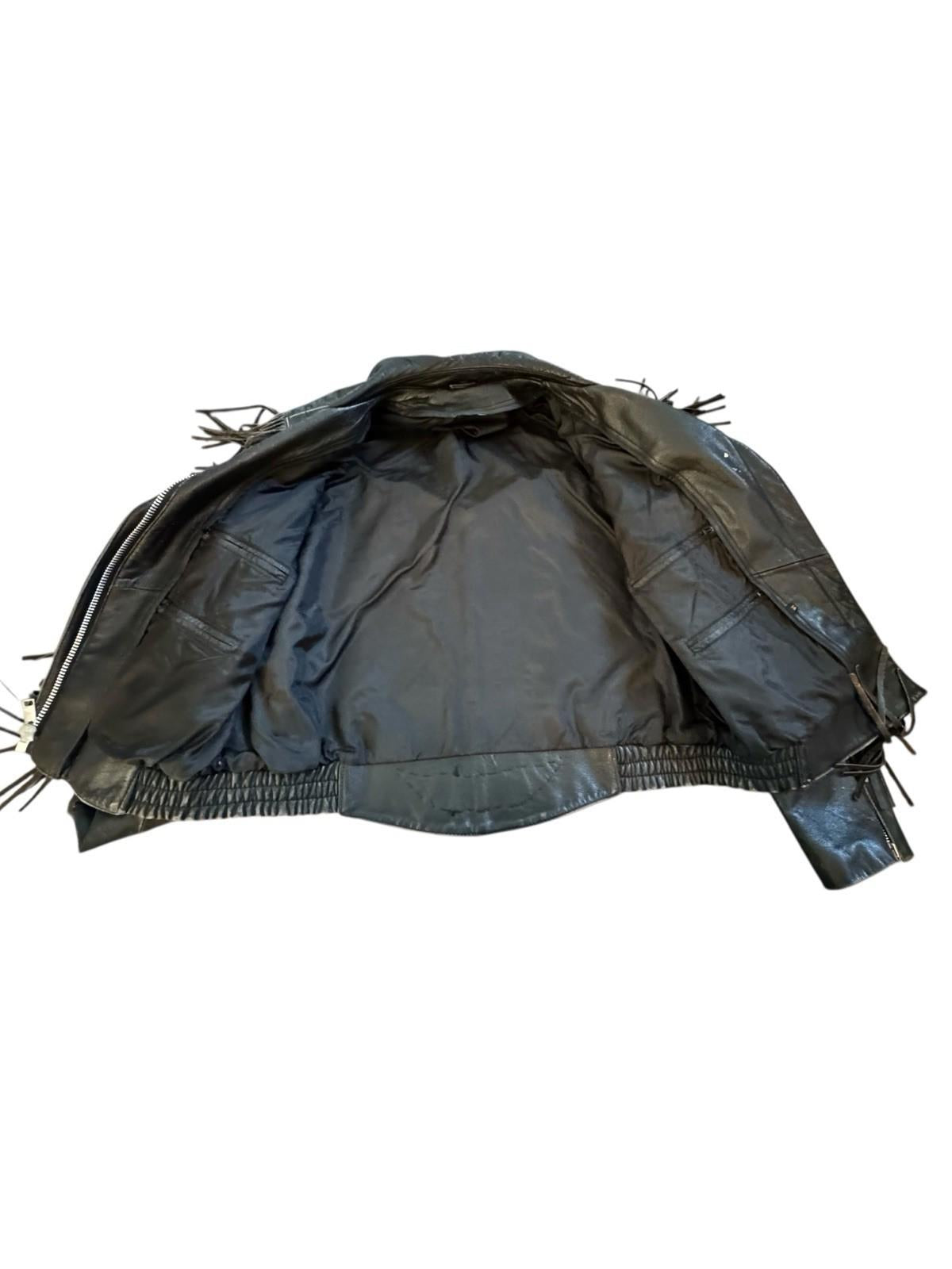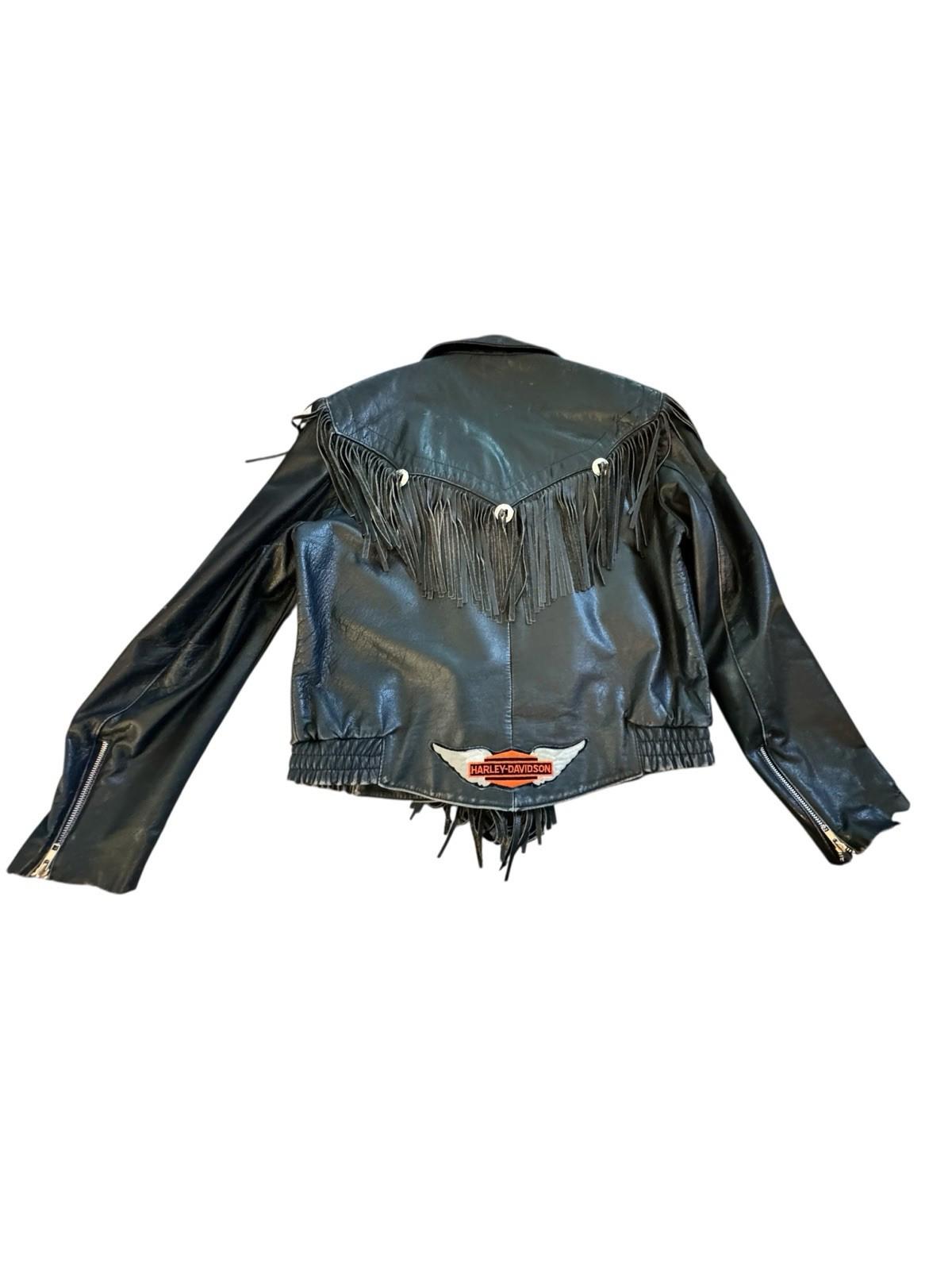 Womens Vintage Harley Davidson Black Leather Fringe Motorcycle Biker Jacket 14